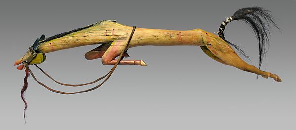 Horses are a significant part of Lakota culture, and Lakota warriors used effigies or "dance sticks" depicting horses in their ceremonies. However, the effigy at the top of this post is one of just a few known dance sticks that shows the entire body of the horse! Most dance sticks only show the horse's head and maybe a hoof (like the one below, also created by Joseph No Two Horns).